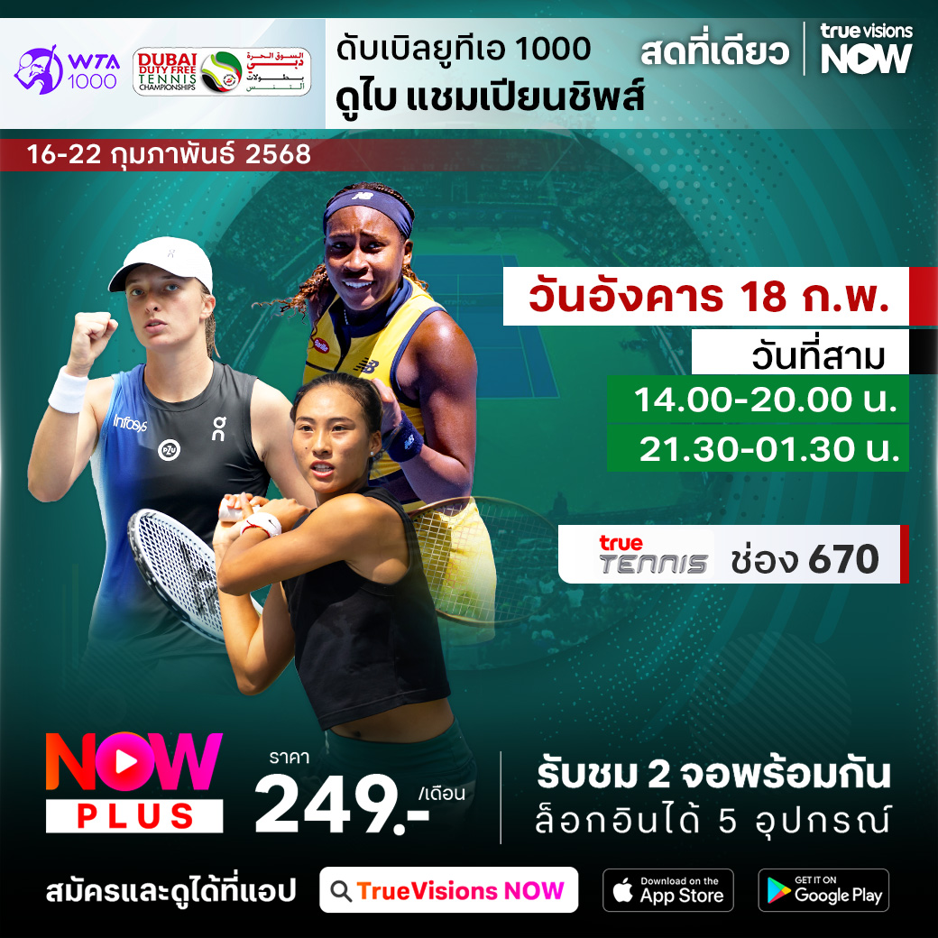 เทนนิสหญิง ดับเบิ้ลยูทีเอ ทัวร์ สัปดาห์นี้เจอกับรายการใหญ่อีกรายการจากภูมิภาคตะวันออกกลาง กับรายการ ดูไบ แชมเปี้ยนชิพส์ ที่เมืองดูไบ ประเทศสหรัฐอาหรับเอมิเรตส์ เป็นอีกหนึ่งรายการที่รวมสุดยอดนักเทนนิสหญิงไว้รวมกันมากที่สุด ร่วมลุ้นกันว่าใครจะคว้าแชมป์รายการนี้ไปครอง ชมสด ครบทุกรอบ ที่ ทรูวิชั่นส์