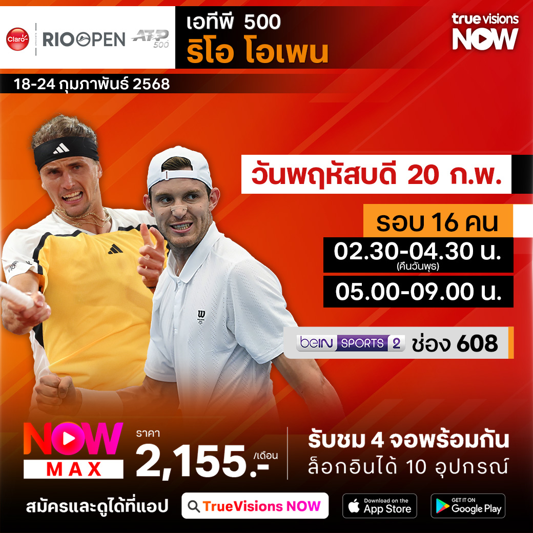 เทนนิสชาย เอทีพี ทัวร์ สัปดาห์นี้พบกับรายการใหญ่ที่สุดในทวีปอเมริกาใต้ และเป็นการแข่งขันบนคอร์ทดิน จากเมือง ริโอ เดจาเนโร ประเทศบราซิล กับรายการ ริโอ โอเพ่น อีกหนึ่งรายการปราบเซียนนักเทนนิสระดับโลก เพราะต้องสู้กับสภาพอากาศร้อนชื้นในบราซิล ร่วมลุ้นกันว่าใครจะคว้าแชมป์ไปครอง ชมสด ครบทุกรอบ ที่ ทรูวิชั่นส์