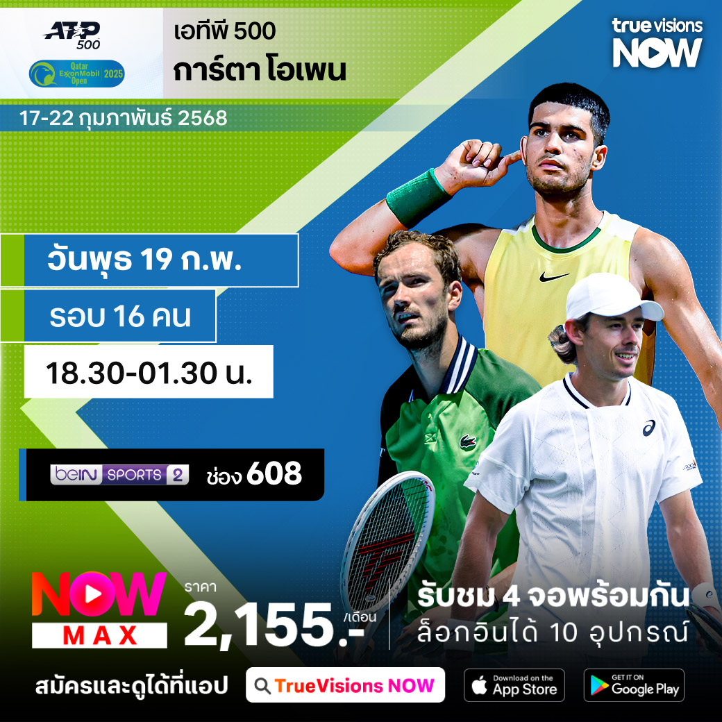 เทนนิสชาย เอทีพี ทัวร์ สัปดาห์นี้พบกับรายการใหญ่ระดับ เอทีพี 500 จากกรุงโดฮา ประเทศกาตาร์ กับรายการ กาตาร์ โอเพ่น สำหรับรายการนี้มีการปรับให้ใหญ่ขึ้นเป็นปีแรก และมีนักเทนนิสระดับโลกเข้าร่วมการแข่งขันกันคับคั่ง ร่วมลุ้นว่าใครจะคว้าแชมป์รายการนี้ไปครอง ชมสด ครบทุกรอบ ที่ ทรูวิชั่นส์