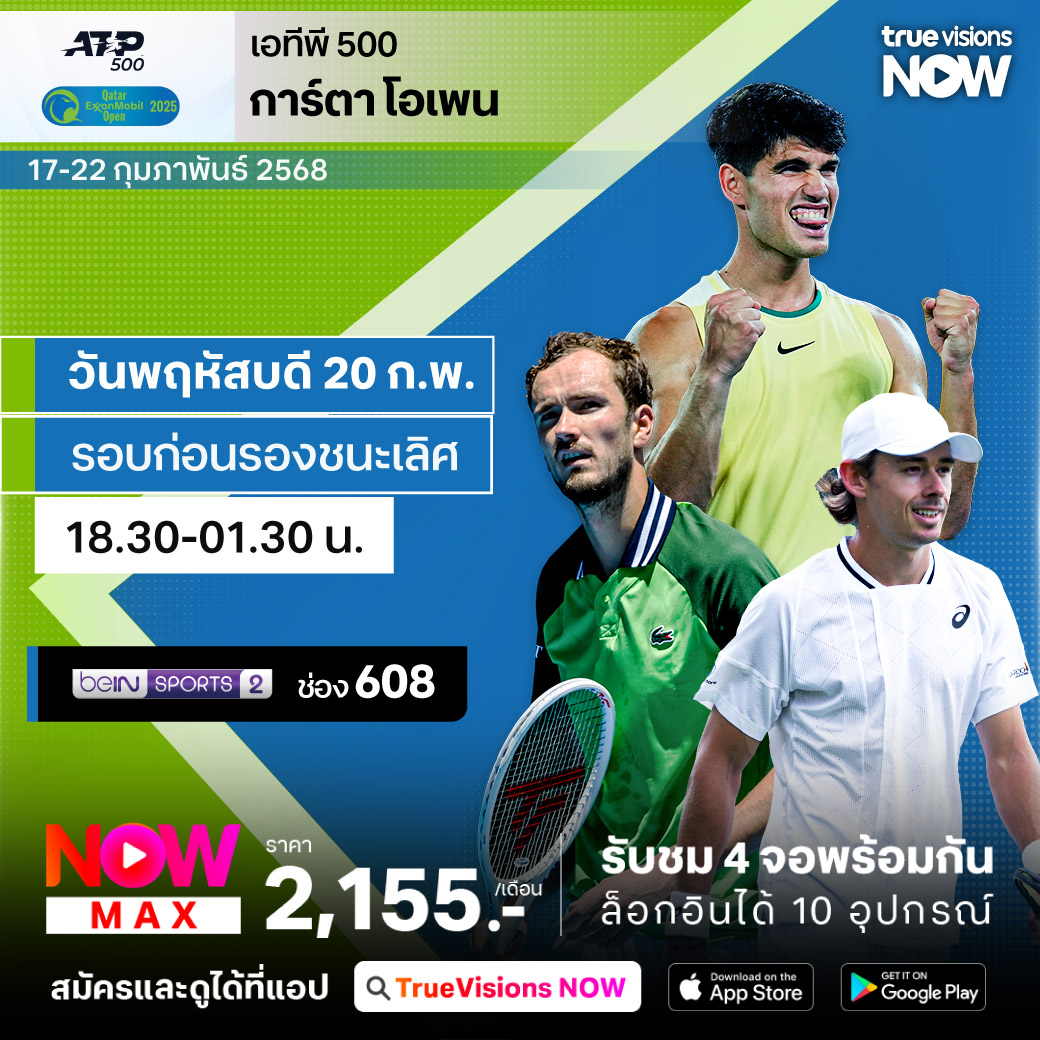 เทนนิสชาย เอทีพี ทัวร์ สัปดาห์นี้พบกับรายการใหญ่ระดับ เอทีพี 500 จากกรุงโดฮา ประเทศกาตาร์ กับรายการ กาตาร์ โอเพ่น สำหรับรายการนี้มีการปรับให้ใหญ่ขึ้นเป็นปีแรก และมีนักเทนนิสระดับโลกเข้าร่วมการแข่งขันกันคับคั่ง ร่วมลุ้นว่าใครจะคว้าแชมป์รายการนี้ไปครอง ชมสด ครบทุกรอบ ที่ ทรูวิชั่นส์