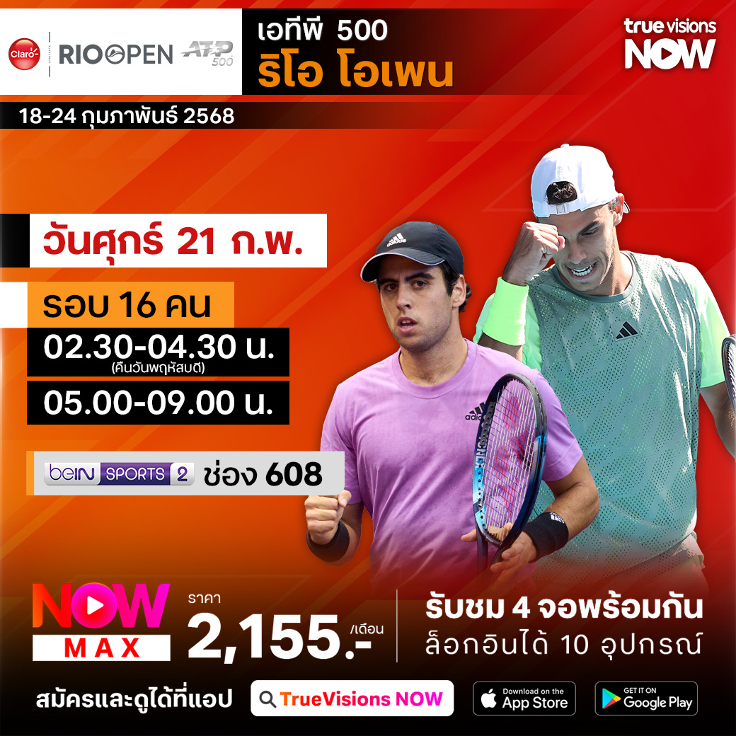เทนนิสชาย เอทีพี ทัวร์ สัปดาห์นี้พบกับรายการใหญ่ที่สุดในทวีปอเมริกาใต้ และเป็นการแข่งขันบนคอร์ทดิน จากเมือง ริโอ เดจาเนโร ประเทศบราซิล กับรายการ ริโอ โอเพ่น อีกหนึ่งรายการปราบเซียนนักเทนนิสระดับโลก เพราะต้องสู้กับสภาพอากาศร้อนชื้นในบราซิล ร่วมลุ้นกันว่าใครจะคว้าแชมป์ไปครอง ชมสด ครบทุกรอบ ที่ ทรูวิชั่นส์