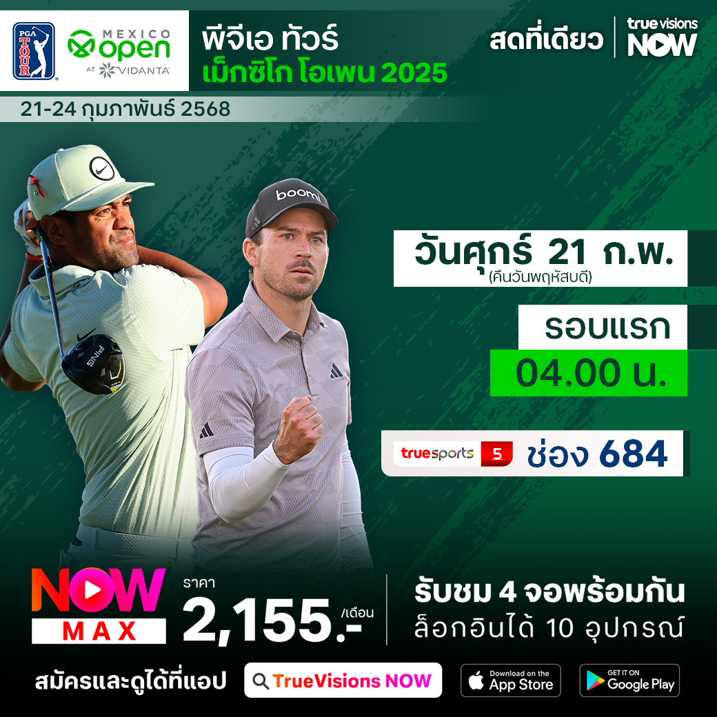 กอล์ฟ พีจีเอ ทัวร์ สัปดาห์นี้ เปลี่ยนบรรยากาศจากสนามแข่งขันในสหรัฐอเมริกา ลงไปสัมผัสประสบการณ์และเสน่ห์ในแดนจังโก้ กับรายการที่แฟนๆ ชื่นชอบอย่าง เม็กซิโก โอเพ่น ที่สนาม บิดันต้า เวิลด์ ในบัลลาต้า ประเทศเม็กซิโก ชิงเงินรางวัลรวมมากถึง 7 ล้านเหรียญสหรัฐฯ ร่วมลุ้นกันว่าแชมป์ปีนี้จะเป็นใคร ชมสด เอ็กซ์คลูซีฟ ที่เดียวที่ ทรูวิชั่นส์