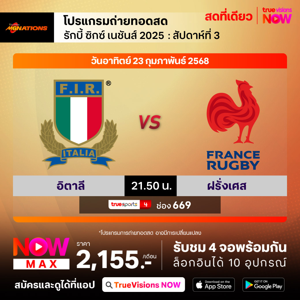 Italy vs France เวลา 21.50-00.00 ทางช่อง TS 4 (669)