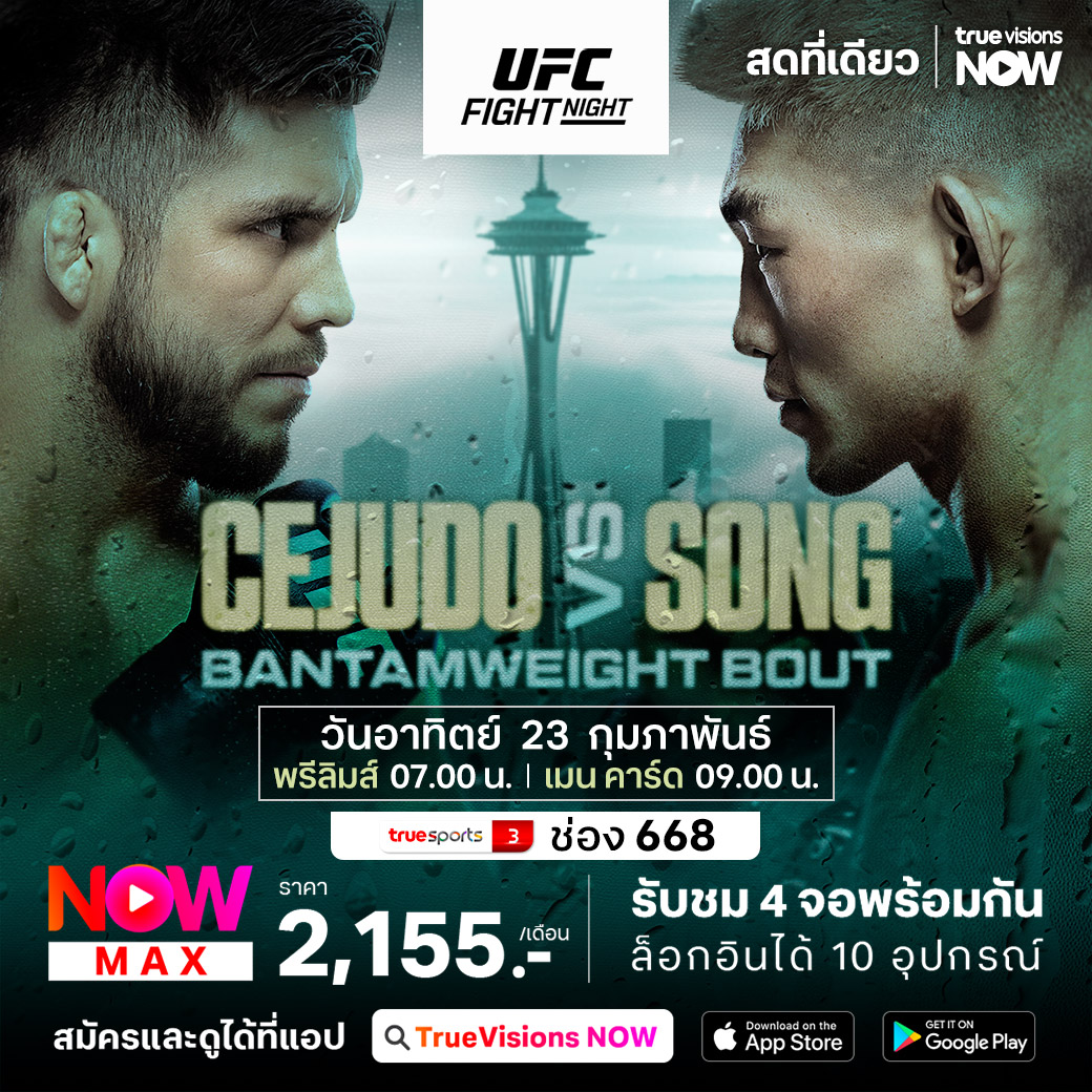 ยูเอฟซี ไฟต์ ไนท์ พาแฟนๆ ไปที่สังเวียน ไคลเมต เพลดจ์ อารีน่า ใน ซีแอทเทิ่ล รัฐวอชิงตัน คู่เอกในรุ่นแบนตั้มเวต เฮนรี่ เซฮูโด้ อดีตแชมป์ 2 รุ่น ปะทะนักสู้อันตรายจากจีน สง หย่าตง ร่วมด้วยรุ่นมิดเดิ้ลเวต เบรนแดน อัลเลน พบ แอนโทนี่ เฮอร์นันเดซ ชมสด เอ็กซ์คลูซีฟ ตั้งแต่รอบพรีลิมส์ ถึง เมน คาร์ด ที่เดียว ที่ ทรูวิชั่นส์