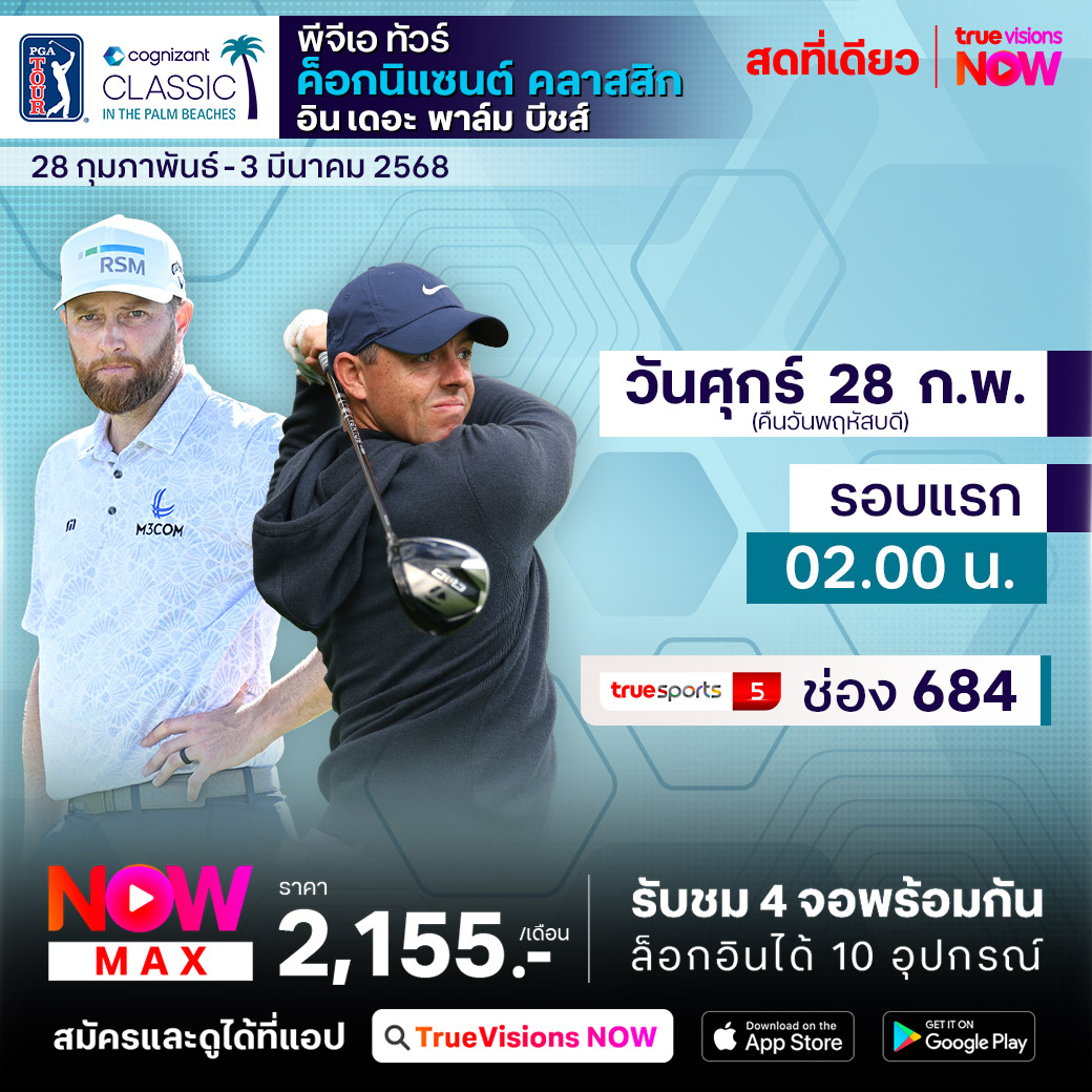กอล์ฟ พีจีเอ ทัวร์ สัปดาห์นี้ กลับมากันที่สหรัฐอเมริกาอีกครั้ง กับรายการ ค็อกนิแซนต์ คลาสสิก อิน เดอะ ปาล์ม บีชส์ ที่สนาม พีจีเอ เนชั่นแนล (เดอะ แชมเปี้ยนส์ คอร์ส) ในปาล์ม บีช การ์เด้น รัฐฟลอริด้า โดยมีเงินรางวัลให้ชิงกัน 9,200,000 เหรียญสหรัฐฯ หรือประมาณ 312 ล้านบาท ร่วมลุ้นกันว่าแชมป์ปีนี้จะเป็นใคร ชมสด เอ็กซ์คลูซีฟ ครบทุกรอบ ที่เดียวที่ ทรูวิชั่นส์