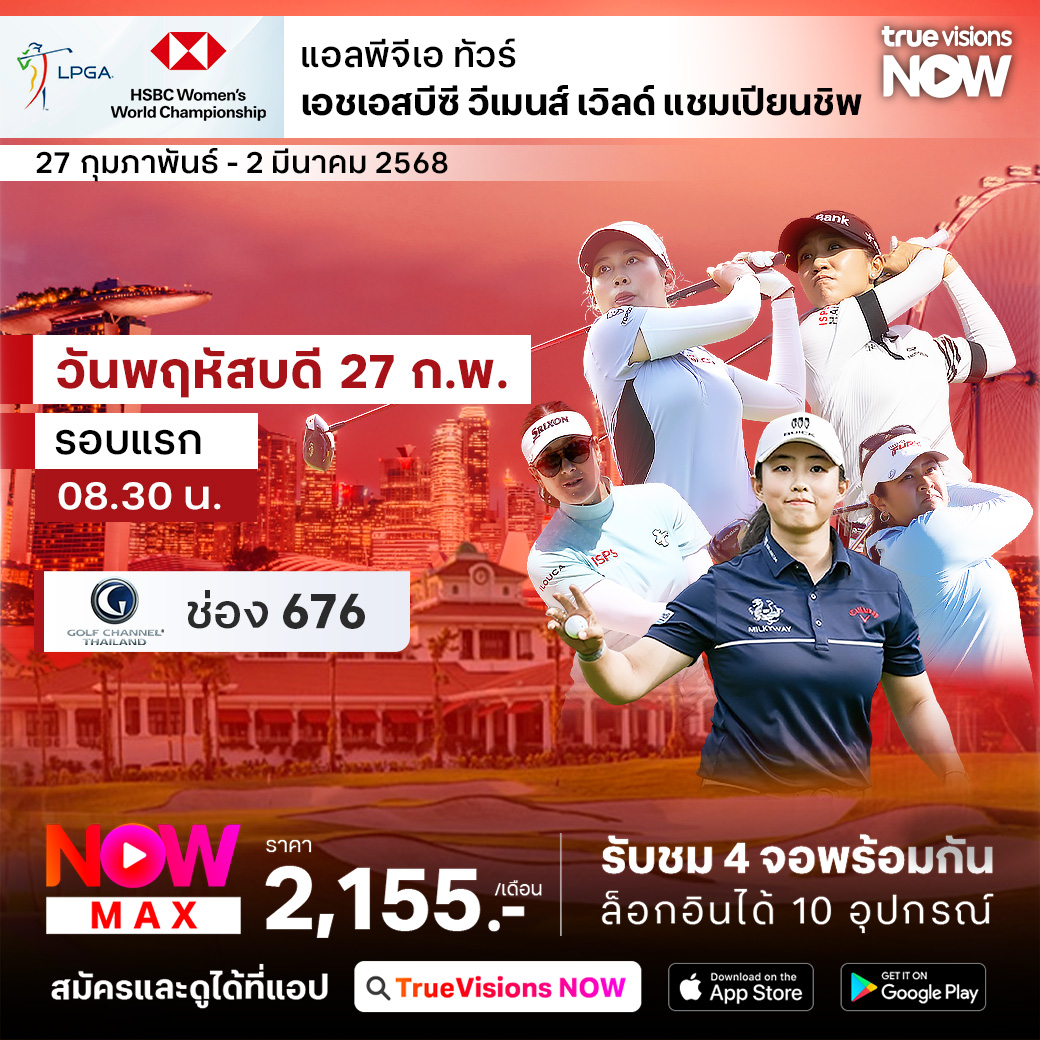 กอล์ฟหญิง แอลพีจีเอ ทัวร์ เปิดศึกกันต่อที่สิงคโปร์ กับรายการใหญ่ของฤดูกาล เอสเอชบีซี วีเมนส์ เวิลด์ แชมเปี้ยนชิพ 2025 ที่เหล่าซูเปอร์สตาร์ของโลกมาร่วมแข่งขันคับคั่ง ส่งใจเชียร์และให้กำลังใจโปรสาวไทย ทำสกอร์แข่งกับนักกอล์ฟระดับท็อปของ เวิลด์ แรงค์กิ้ง เพื่อลุ้นเป็นแชมป์รายการนี้ โดยมีเงินรางวัลรวมให้ไล่ล่ากัน 81.6 ล้านบาท ชมสด จากสนาม เซนโตซ่า กอล์ฟ คลับ ครบทุกรอบ ที่ ทรูวิชั่นส์