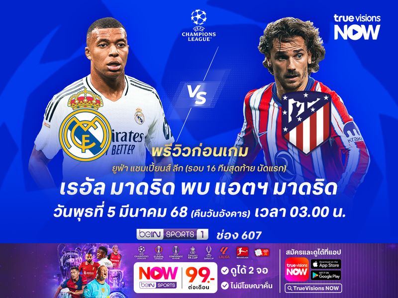 ศึกยูฟ่า แชมเปี้ยนส์ ลีก รอบ 16 ทีมสุดท้าย นัดแรก เรอัล มาดริด จากสเปน จะเล่นที่ ซานติอาโก้ เบร์นาเบว รับการมาเยือนของ แอตเลติโก มาดริด จากสเปนเช่นกัน โดยเกมนี้ เรอัล มาดริด เจ้าถิ่น ฟอร์มตกลงไปในช่วงหลัง โดยเฉพาะในเกม ลา ลีกา ที่แพ้ไปถึง 2 จาก 5 เกมหลังสุด แถมยังชนะได้แค่เกมเดียว แต่ฟอร์มในภาพรวมทุกรายการถือว่ายังทำได้ดี ขณะที่ แอต. มาดริด ยิ่งเล่นยิ่งมั่นใจ พวกเขาทำได้ดีทั้งใน ลา ลีกา และ แชมเปี้ยนส์ ลีก ที่ยังอยู่ในเส้นทางลุ้นแชมป์ทั้งคู่ และเกมนี้พวกเขามีโอกาสสูงที่จะไม่แพ้ก่อนในเกมแรก