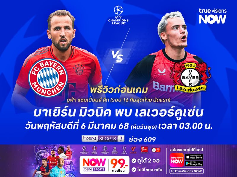 ศึกยูฟ่า แชมเปี้ยนส์ ลีก รอบ 16 ทีมสุดท้าย นัดแรก บาเยิร์น มิวนิค จากเยอรมนี จะเล่นที่ อัลลิอันซ์ อารีน่า รับการมาเยือนของ ไบเออร์ เลเวอร์คูเซ่น จากเยอรมนีเช่นกัน โดยเกมนี้ บาเยิร์น มิวนิค เจ้าถิ่น กำลังอยู่ในฟอร์มที่ยอดเยี่ยม หลังไม่แพ้ใครมา 9 เกมติดต่อกันแล้วในทุกรายการ และชนะไปถึง 7 นัด ขณะที่ เลเวอร์คูเซ่น ก็ดีไม่แพ้กัน หลังไม่แพ้ใครมา 8 นัดติดต่อกันแล้ว และชนะไป 5 เกม แม้อันดับในบุนเดสลีกาจะเป็นรองเสือใต้ แต่ถ้าผลงานใน แชมเปี้ยนส์ ลีก ทีมห้างขายยาถือว่าทำได้ดีกว่า