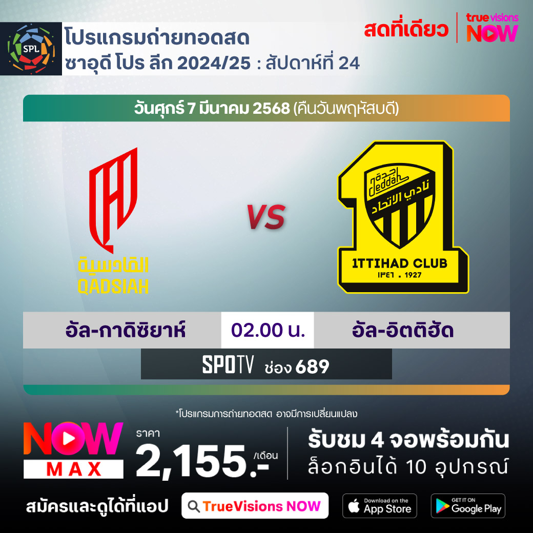 Al-Qadisiyah vs Al-Ittihad เวลา 02.00-04.00 ทางช่อง SPOTV (689)