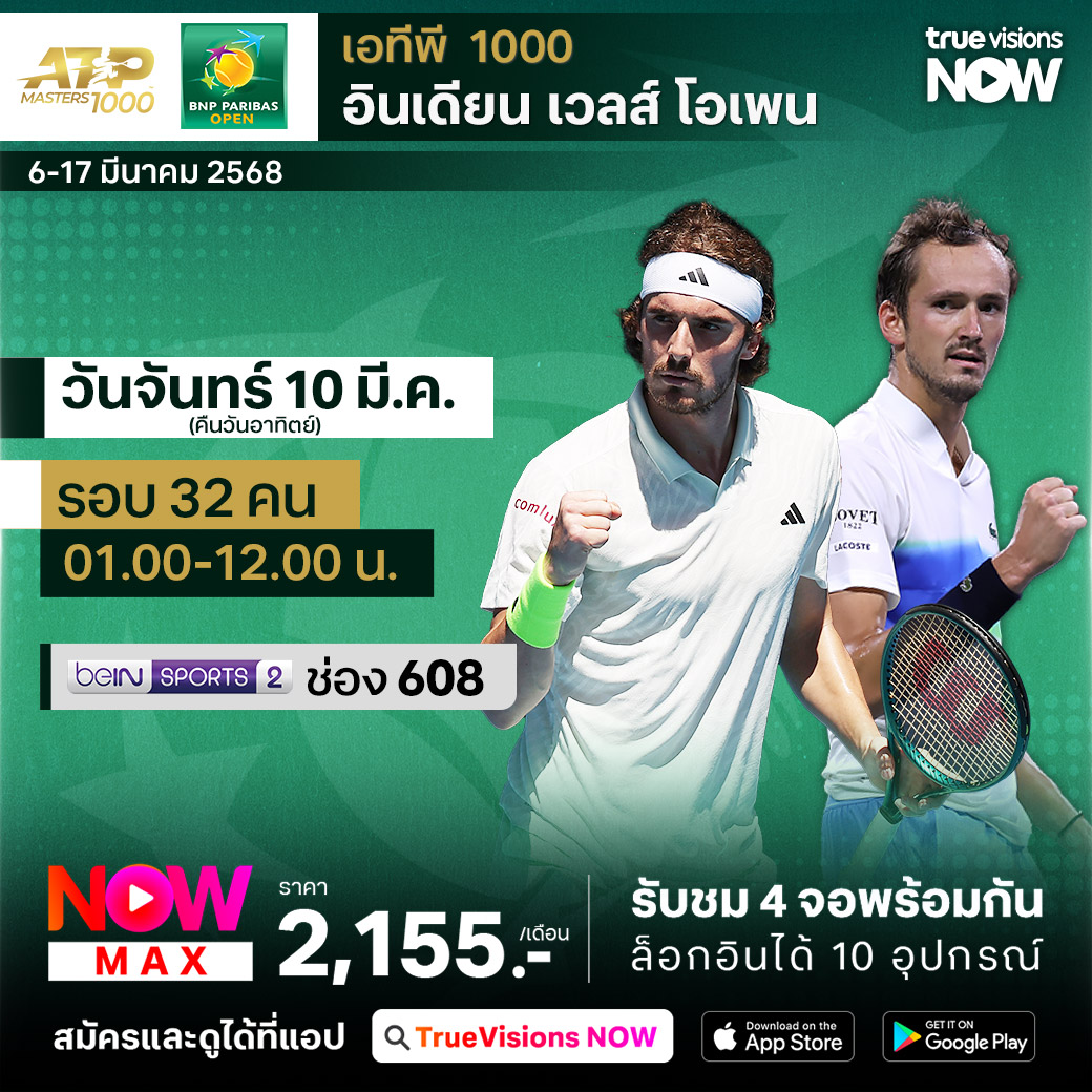เทนนิส เอทีพี ทัวร์ สัปดาห์นี้ พบกับรายการใหญ่ที่ได้รับการขนานนามว่าเป็นแกรนด์สแลมที่ 5 ของปี อินเดียน เวลส์ โอเพ่น เป็นรายการที่รวมนักกีฬาเทนนิสชื่อดังเข้าร่วมมากที่สุดและมีเงินรางวัลมากที่สุดรายการหนึ่ง ร่วมลุ้นกันว่าใครจะคว้าแชมป์ไปครอง ชมสด ครบทุกรอบ ที่ ทรูวิชั่นส์