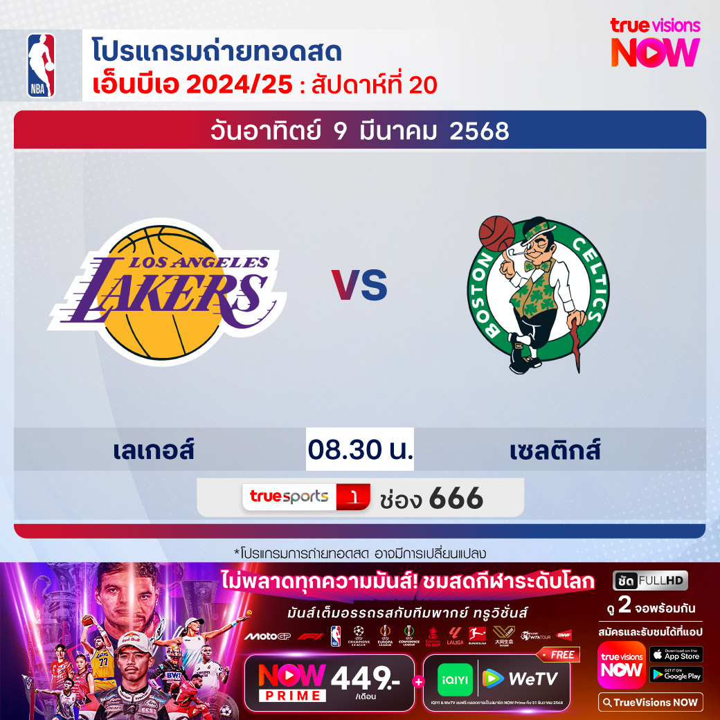 Lakers Vs Celtics เวลา 08.30 ทางช่อง TS 1 (666)
