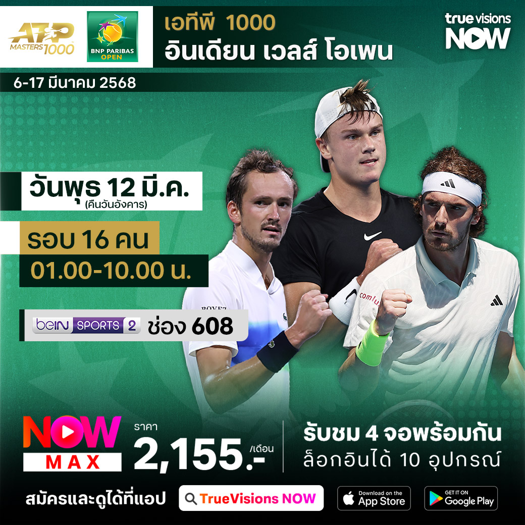 เทนนิส เอทีพี ทัวร์ สัปดาห์นี้ พบกับรายการใหญ่ที่ได้รับการขนานนามว่าเป็นแกรนด์สแลมที่ 5 ของปี อินเดียน เวลส์ โอเพ่น เป็นรายการที่รวมนักกีฬาเทนนิสชื่อดังเข้าร่วมมากที่สุดและมีเงินรางวัลมากที่สุดรายการหนึ่ง ร่วมลุ้นกันว่าใครจะคว้าแชมป์ไปครอง ชมสด ครบทุกรอบ ที่ ทรูวิชั่นส์