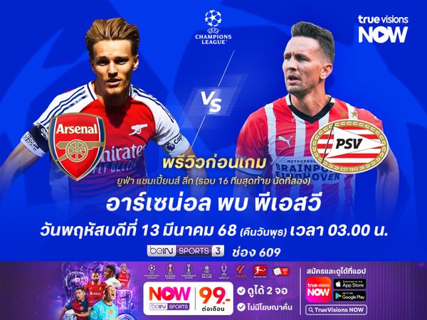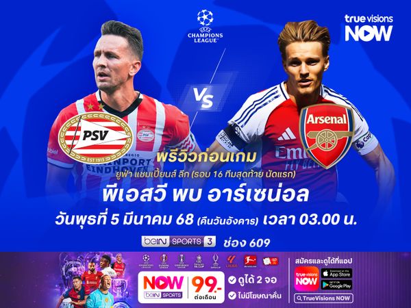ศึกยูฟ่า แชมเปี้ยนส์ ลีก รอบ 16 ทีมสุดท้าย นัดที่สอง อาร์เซน่อล จากอังกฤษ จะเล่นที่ เอมิเรตส์ สเตเดี้ยม รับการมาเยือนของ พีเอสวี ไอนด์โฮเฟ่น จากเนเธอร์แลนด์ โดยเกมนี้ อาร์เซน่อล เจ้าถิ่น ชนะมาอย่างขาดลอยในเกมแรก 7-1 ทำให้เข้ารอบแทบจะเต็มตัวแล้ว เกมนี้จึงน่าจะส่งตัวสำรองยกชุด และเล่นแบบสบายใจ ขณะที่ พีเอสวี คงพลิกสถานการณ์อะไรไม่ได้แล้ว แต่คงมาสู้เต็มที่เพื่อแฟนๆ ที่ตามาเชียร์