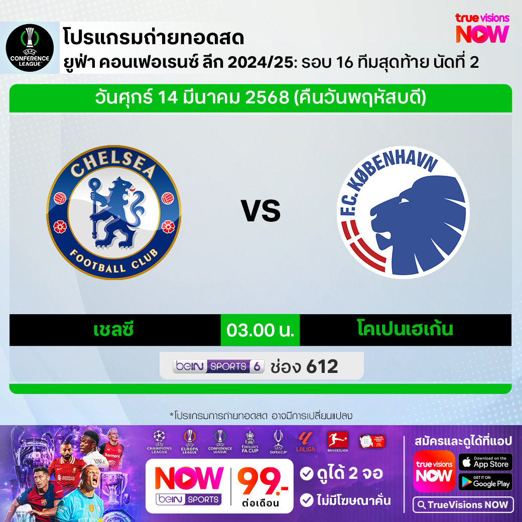 Chelsea vs Copenhagen เวลา 03.00-05.00 ทางช่อง beIN 6 (612)