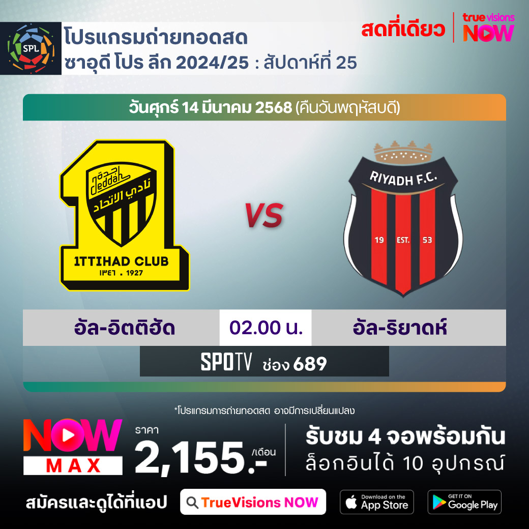 Al-Ittihad vs Al-Riyadh เวลา 02.00-04.00 ทางช่อง SPOTV (689)
