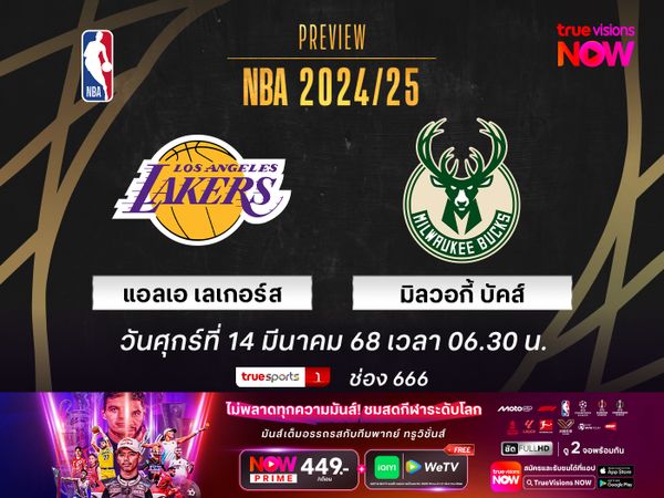 เวลา 06.30 น. วันที่ 14 มี.ค. นี้ แอลเอ เลเกอร์ส @ มิลวอกี้ บัคส์ ถ่ายทอดสดทางช่อง ทรูสปอร์ตส์1 (666)