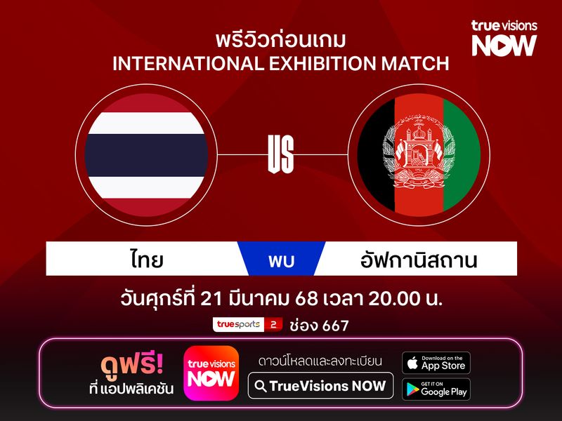 พรีวิวความพร้อมเกมอุ่นเครื่อง ระหว่าง ทีมชาติไทย พบกับ อัฟกานิสถาน วันศุกร์ที่ 21 มีนาคม 2568 เวลา 20.00 น. ถ่ายทอดสดทางแอปพลิเคชัน TrueVisions Now ช่อง true sports 2 (667)
