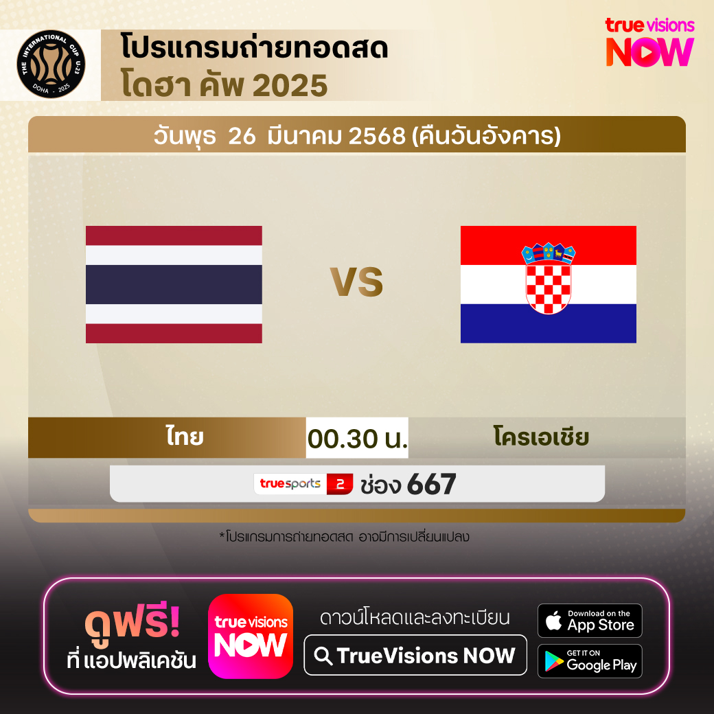 ไทย พบ โครเอเชีย เวลา 00.30-02.30 ทางช่อง TS 2 (667)