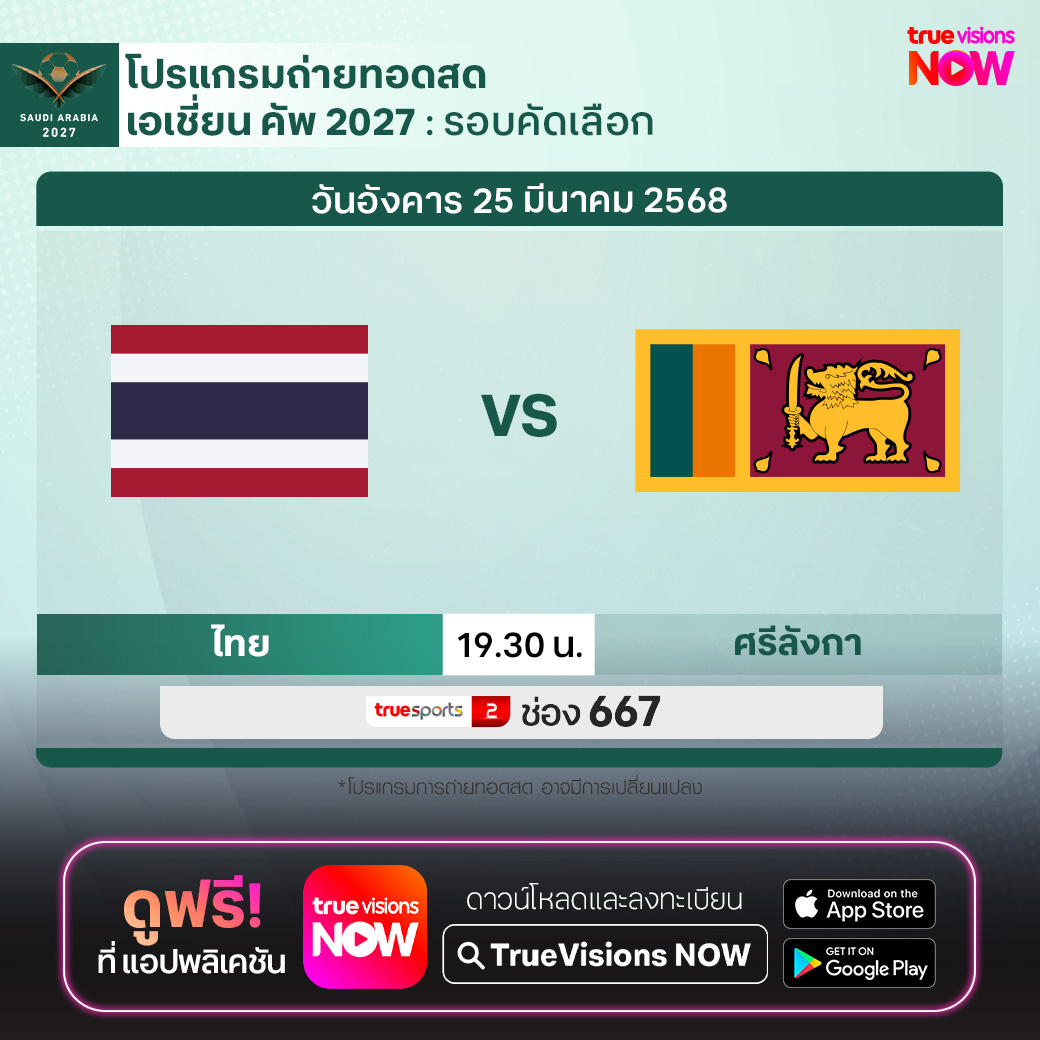 ไทย พบ ศรีลังกา เวลา 19.30-21.30 ทางช่อง TS 2 (667)