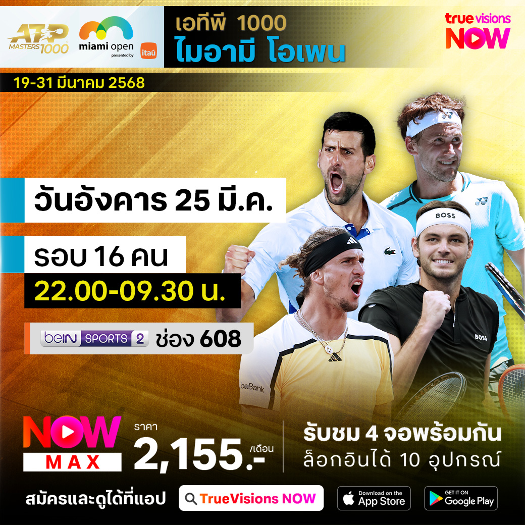 วันนี้มีอะไรดูที่ ทรูวิชั่นส์ ประจำวันอังคารที่ 25 มีนาคม 68 ยังคงมีกีฬาที่น่าสนใจให้ได้ตามลุ้นตามเชียร์กันเหมือนเดิม โดยในส่วนของฟุตบอลนั้นยังมีศึก เอเชียน คัพ 2027 รอบคัดเลือก และ โดฮา คัพ 2025 ให้ตามเชียร์กันต่อ ส่วนกีฬาอื่นๆ ยังมีเทนนิส เอทีพี ทัวร์ และดับเบิ้ลยูทีเอ ทัวร์ รายการ ไมอามี่ โอเพ่น งานนี้ ทรูวิชั่นส์ จัดเต็มให้ชมกันถึงบ้าน
