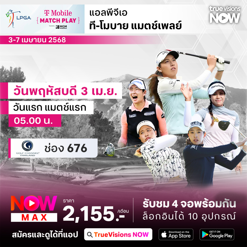 กอล์ฟหญิง แอลพีจีเอ ทัวร์ สัปดาห์นี้ พบกับรายการ ที-โมบาย แมตช์ เพลย์ 2025 จากสนาม ชาโดว์ ครีก กอล์ฟ คอร์ส ในนอร์ธ ลาส เวกัส รัฐเนวาด้า ประเทศสหรัฐอเมริกา ชิงเงินรางวัลรวม 3,000,000 เหรียญสหรัฐฯ ร่วมเชียร์โปรสาวไทย ทำคะแนนพิชิตชัยเหนือคู่แข่งจากทั่วโลก ชมสด ครบทุกรอบ ที่ทรูวิชั่นส์