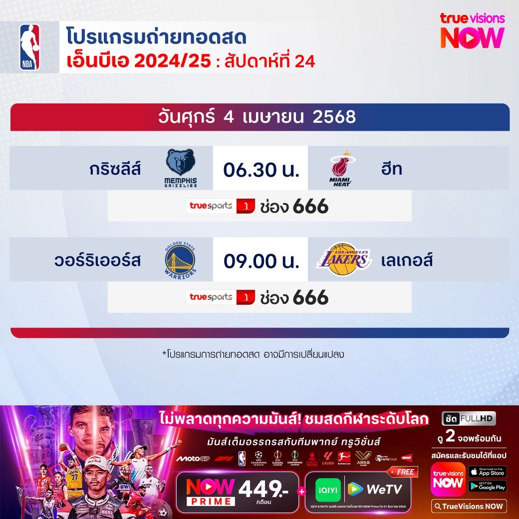 วันศุกร์ 4 เม.ย. Grizzlies Vs Heat เวลา 06.30 ทางช่อง TS 1 (666)