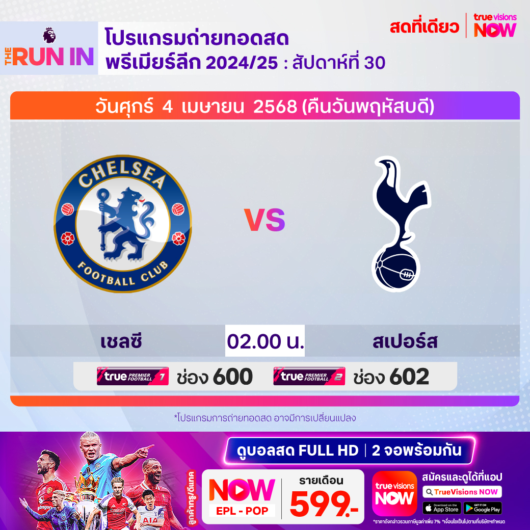 Chelsea vs Tottenham Hotspur เวลา 02:00 - 04:00 ทางช่อง TPF 1 (600) / TPF 2 (602)
