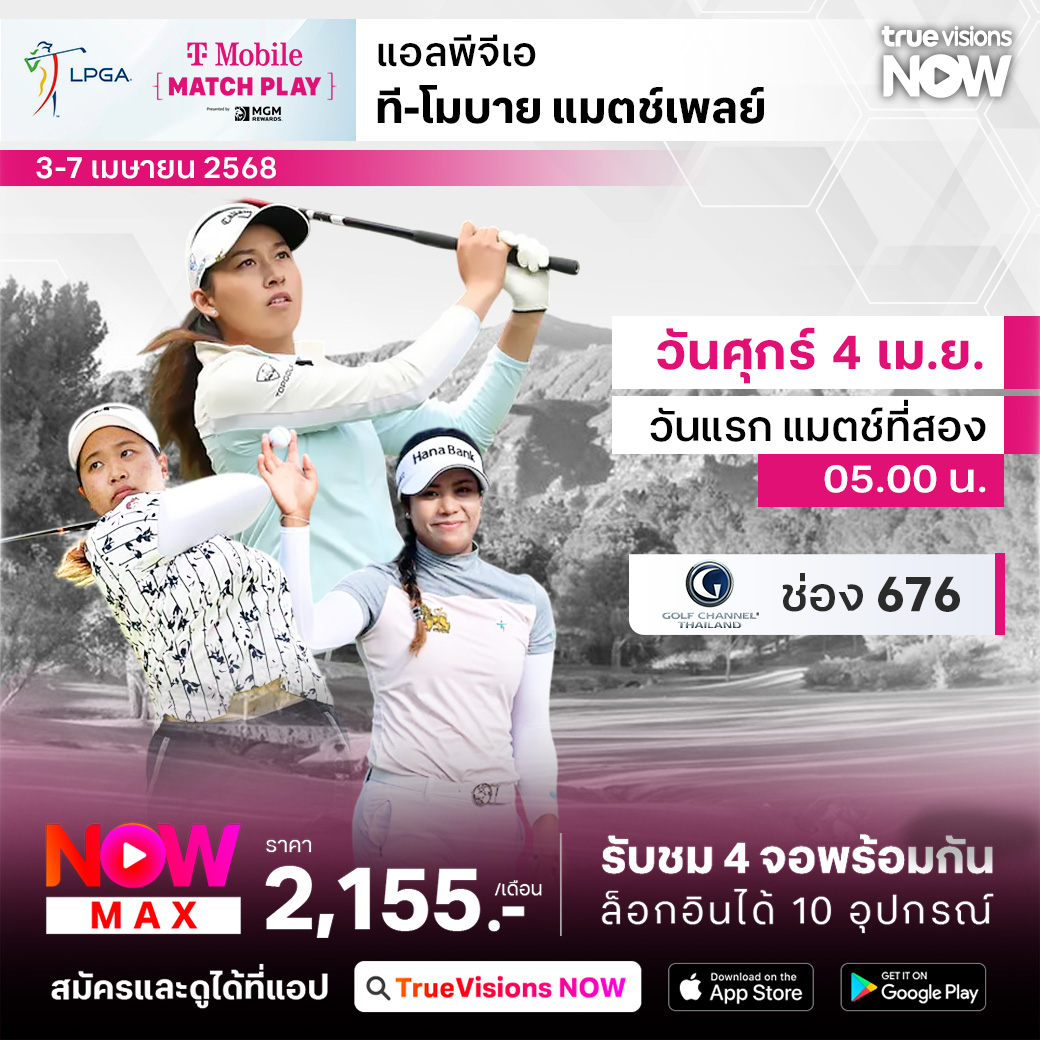 กอล์ฟหญิง แอลพีจีเอ ทัวร์ สัปดาห์นี้ พบกับรายการ ที-โมบาย แมตช์ เพลย์ 2025 จากสนาม ชาโดว์ ครีก กอล์ฟ คอร์ส ในนอร์ธ ลาส เวกัส รัฐเนวาด้า ประเทศสหรัฐอเมริกา ชิงเงินรางวัลรวม 3,000,000 เหรียญสหรัฐฯ ร่วมเชียร์โปรสาวไทย ทำคะแนนพิชิตชัยเหนือคู่แข่งจากทั่วโลก ชมสด ครบทุกรอบ ที่ทรูวิชั่นส์