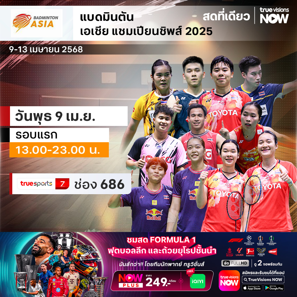 พลาดไม่ได้สำหรับแฟนๆ แบดมินตัน กับศึกแห่งศักดิ์ศรีระดับชิงแชมป์ทวีป ร่วมชมและเชียร์ทีมแบดมินตันของไทย ในการประชันฝีมือกับสุดยอดตัวแทนจากทุกชาติ มาร่วมแข่งขันและลุ้นเป็นแชมป์ในรายการ แบดมินตัน เอเชีย แชมเปี้ยนชิพ 2025 ประเภทบุคคล ที่หนิงโป ประเทศจีน ชมสด ครบทุกรอบ ที่เดียวที่ ทรูวิชั่นส์