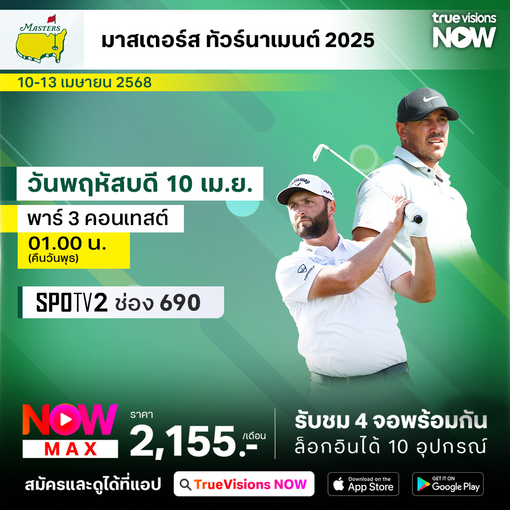 ถนนทุกสายมุ่งหน้าสู่ ออกัสต้า เนชั่นแนล กอล์ฟ คลับ กับกอล์ฟรายการเมเจอร์แรกของปี มาสเตอร์ส ทัวร์นาเมนต์ รายการที่แฟนๆ รอคอยที่จะติดตามชมด้วยความระทึกใจ กับเสน่ห์และมนต์ขลังที่ไม่มีวันเสื่อมคลาย นักกอล์ฟชั้นนำของโลกมากันครบ ทุกช็อตมีความหมาย ทุกคะแนนมีโอกาสลุ้นเป็นเจ้าของกรีนแจ็คเก็ตและโทรฟี่สำหรับแชมเปี้ยน ชมสด เอ็กซ์คลูซีฟ ครบทุกรอบ ที่เดียวที่ ทรูวิชั่นส์
