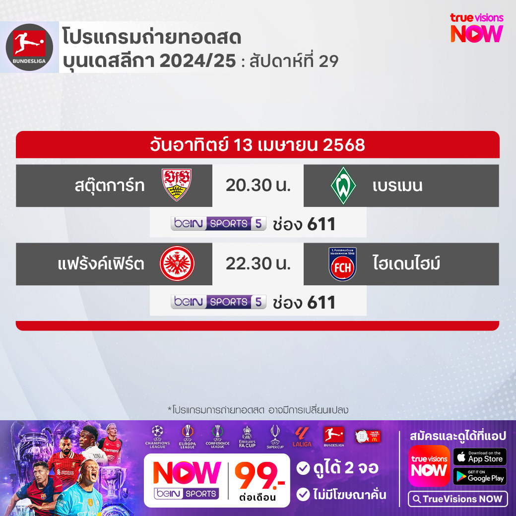 Stuttgart vs Werder Bremen เวลา 20.30-22.30 ทางช่อง beIN 5 (611)