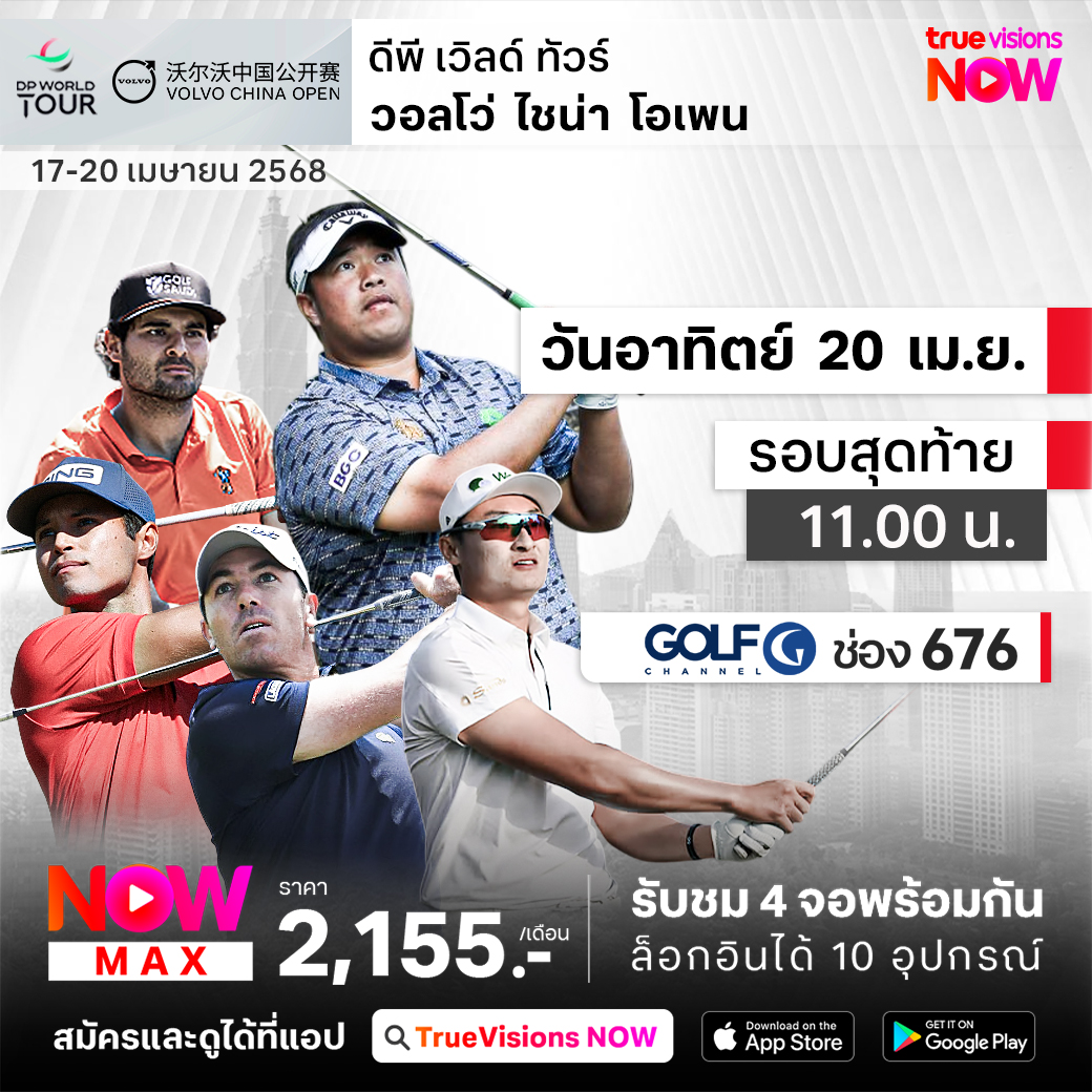 แฟนกีฬากอล์ฟห้ามพลาดกับ ดีพี เวิลด์ ทัวร์ สัปดาห์นี้ไปกันที่ประเทศจีน กับรายการสำคัญ วอลโว่ ไชน่า โอเพ่น 2025 ปีนี้จัดอย่างยิ่งใหญ่ ฉลองครบรอบ 30 ปี ที่สนาม เอนแฮนซ์ แอนติ้ง กอล์ฟ คลับ ในนครเซี่ยงไฮ้ ชิงเงินรางวัลรวม 2,250,000 เหรียญสหรัฐฯ มือดีของเอเชียและทั่วโลก ต่างร่วมแข่งและลุ้นแชมป์กันอย่างคับคั่ง ร่วมเชียร์โปรกอล์ฟชาวไทย "โปรอาร์ม" กีรเดช อภิบาลรัตน์ ชมสด ครบทั้ง 4 รอบที่ ทรูวิชั่นส์