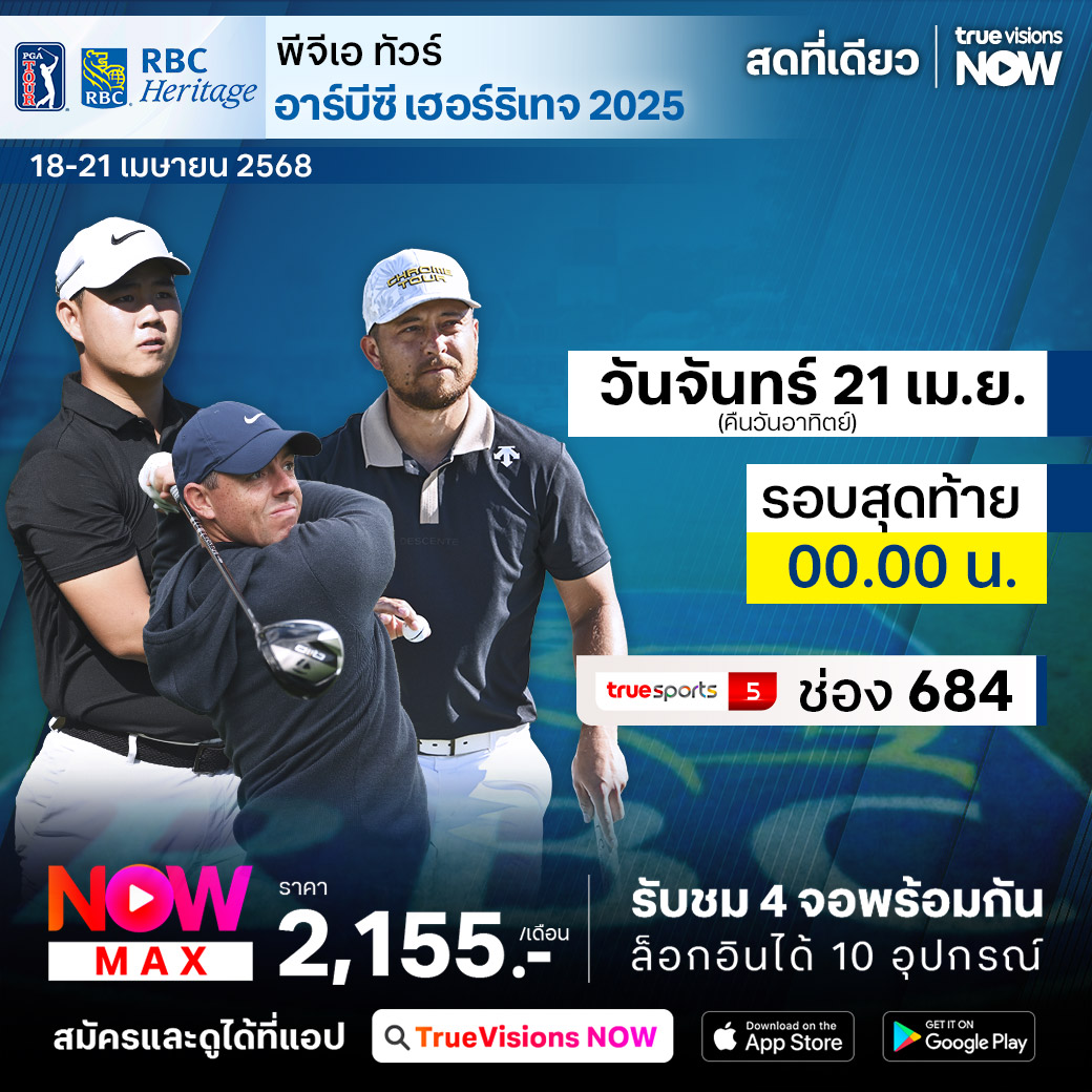 กอล์ฟ พีจีเอ ทัวร์ ซิกเนเจอร์ อีเว้นท์ คัดสรรมือดีระดับท็อปของโลกมาร่วมแข่งขันโดยไม่มีการตัดตัวตกรอบ พร้อมกับล่าเงินรางวัลมหาศาล สัปดาห์นี้พบกับรายการ อาร์บีซี เฮอร์ริเทจ 2025 ที่สนาม ฮาร์เบอร์ ทาวน์ กอล์ฟ ลิงค์ส ใน ฮิลตัน เฮด ไอส์แลนด์, เซาธ์ แคโรไลน่า ใครจะคว้าแชมป์รายการนี้ไปครอง ชมสดครบทั้ง 4 วันแบบเอ็กซ์คลูซีฟ ที่เดียวที่ ทรูวิชั่นส์