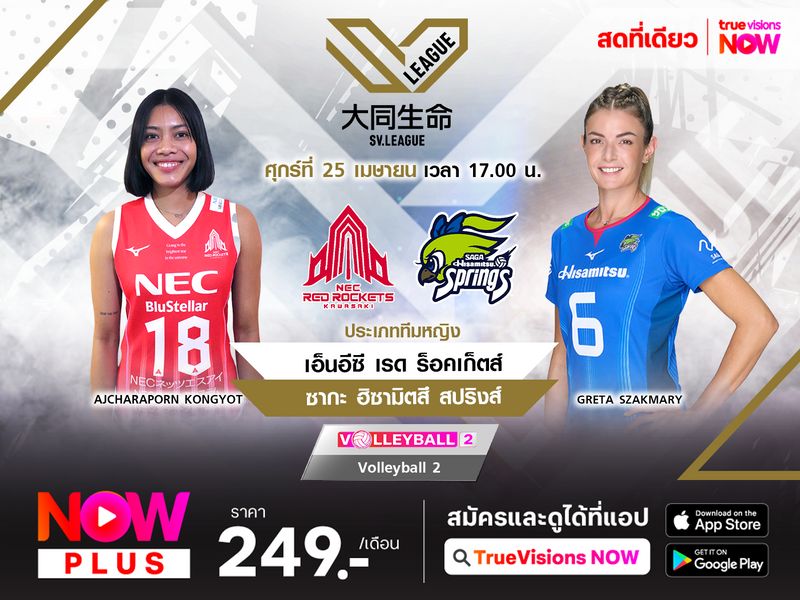 พรีวิว วอลเลย์บอลหญิง เอสวี ลีก 2024/2025 (รอบรองชนะเลิศ เกม 1) คู่ระหว่าง : เอ็นอีซี เรด ร็อคเก็ตส์ (2) พบ ซากะ ฮิซามิตสึ สปริงส์ (3) วันศุกร์ ที่ 25 เม.ย. 68 เวลา 17.00 น. สนาม : โทโรโดกิ อารีน่า ถ่ายทอดสด : Volleyball 2