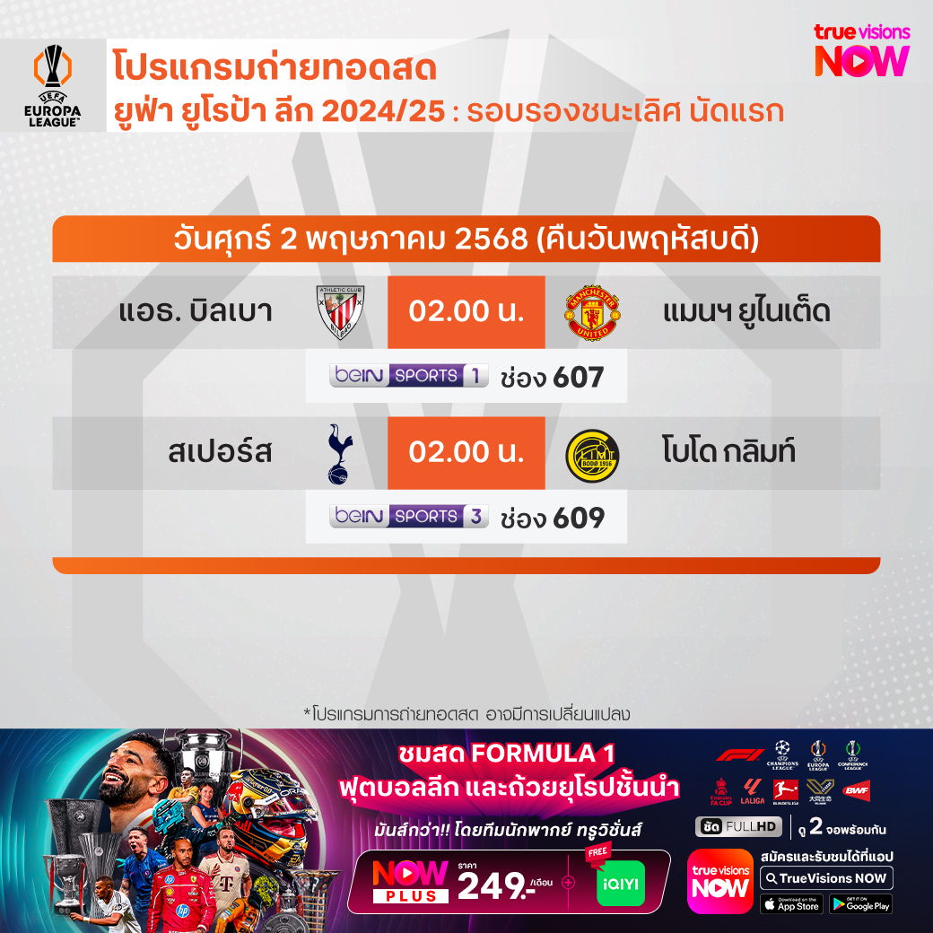 Athletic Bilbao vs Man Utd เวลา 02.00-04.00 ทางช่อง beIN 1 (607)