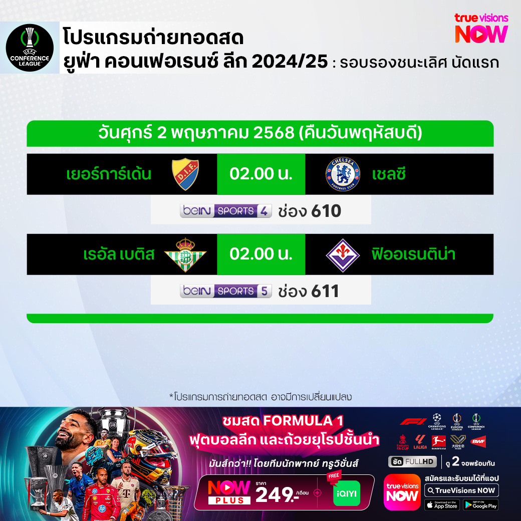 Real Betis vs Fiorentina เวลา 02.00-04.00 ทางช่อง beIN 5 (611)