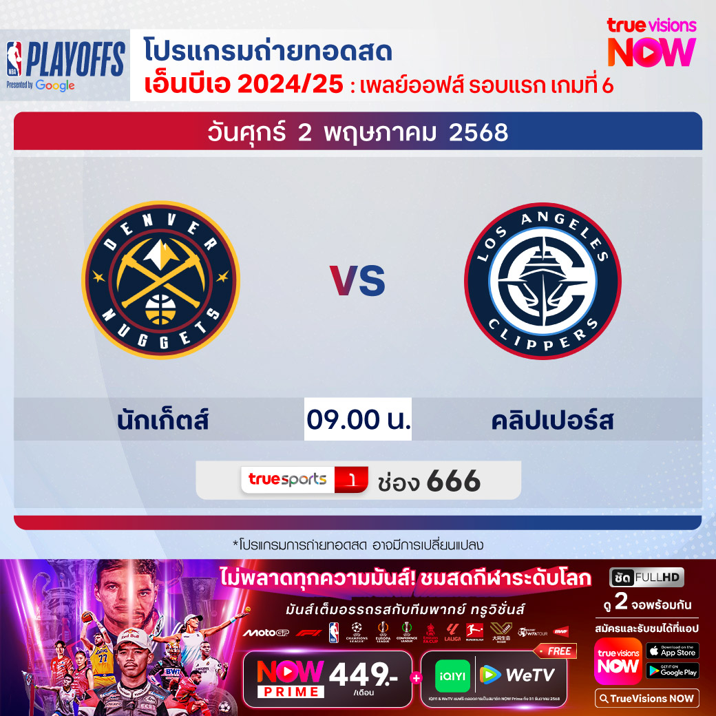 วันศุกร์ 2 พ.ค. Nuggets Vs Clippers เวลา 09.00 ทางช่อง TS 1 (666)
