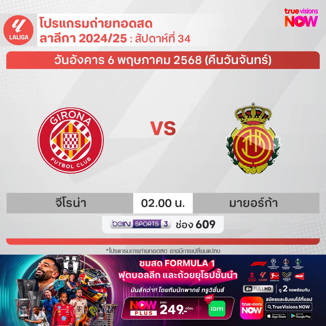Girona vs Mallorca เวลา 02.00-04.00 ทางช่อง beIN 3 (609)