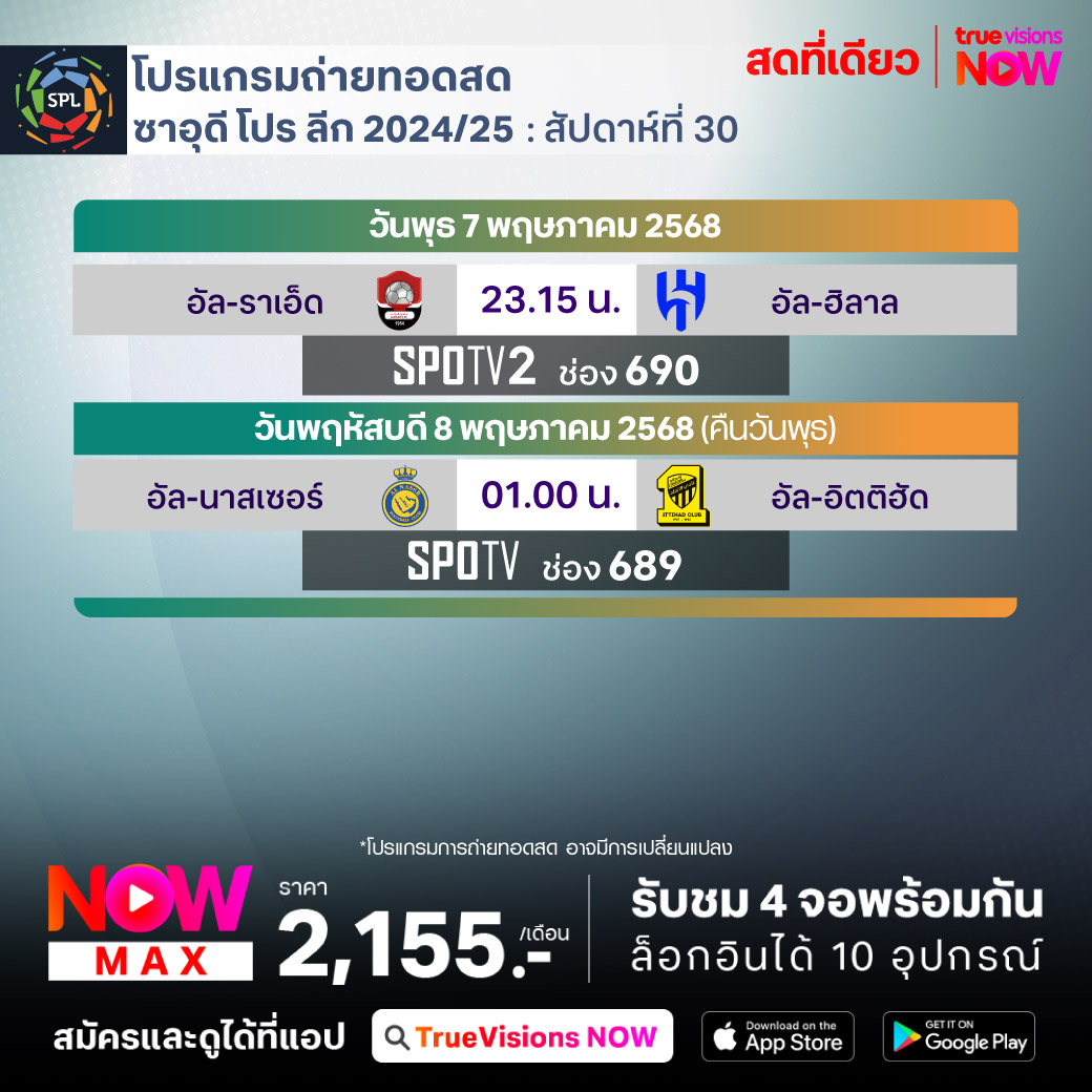 Al-Nassr vs Al-Ittihad เวลา 01.00-03.00 ทางช่อง SPOTV (689)