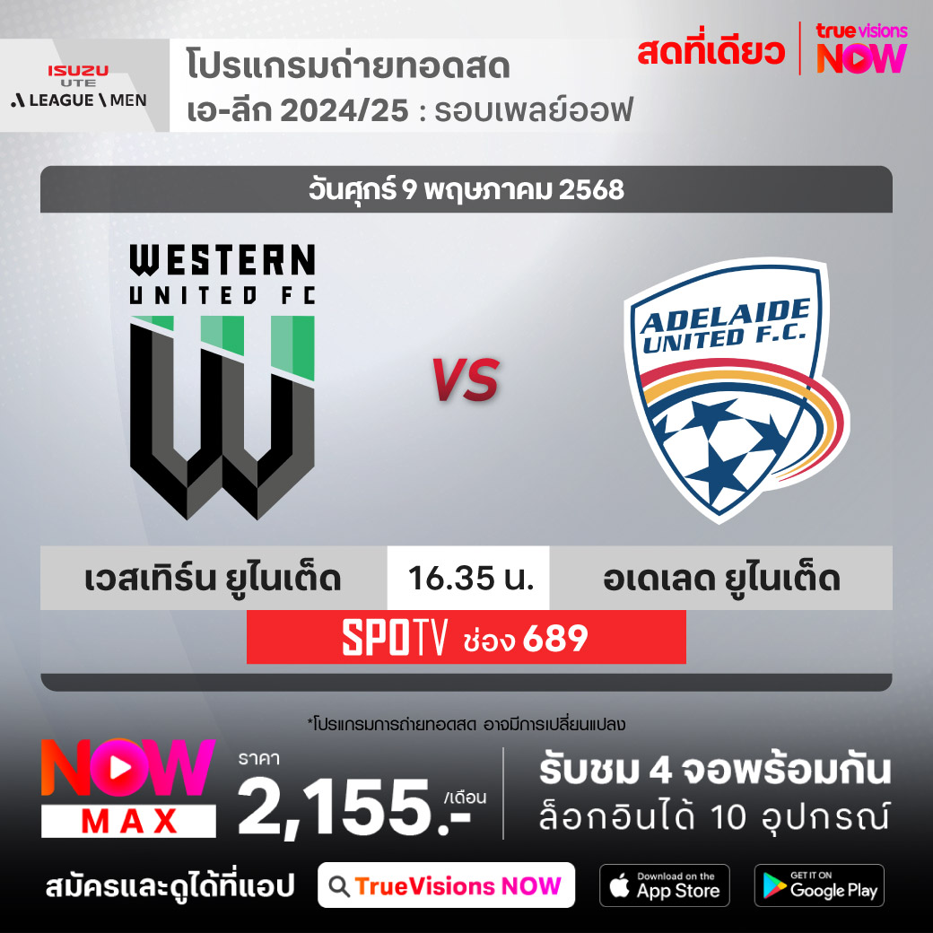 Western United vs Adelaide United เวลา 16.35-18.35 ทางช่อง SPOTV (689)