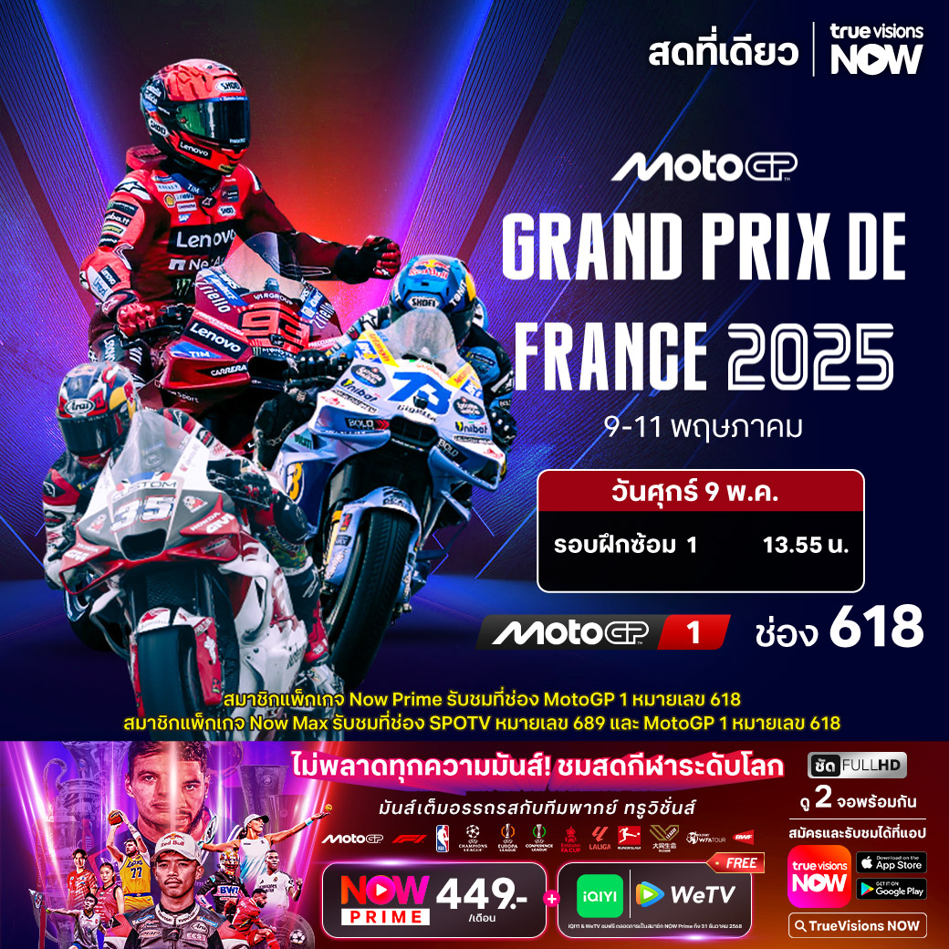 โมโต จีพี เวิลด์ แชมเปี้ยนชิพ ฤดูกาล 2025 สัปดาห์นี้ เป็นการดวลความเร็วระดับโลกที่แดนน้ำหอม ประเทศฝรั่งเศส กับรายการ กรังด์ปรีซ์ ออฟ ฟร้านซ์ เรซที่ 6 ของปี ที่สนาม เลอ มังส์ เซอร์กิต การันตีความดุเดือด เร้าใจ ทั้ง 3 รุ่น จับตาดูรุ่นพรีเมียร์คลาส โมโต จีพี "ก้อง" สมเกียรติ จันทรา จะคว้าแต้มสะสมได้หรือไม่ และการแย่งชิงอันดับบนโพเดี้ยม ใครจะทำได้สำเร็จ ชมสด เอ็กซ์คลูซีฟ ที่เดียวที่ ทรูวิชั่นส์