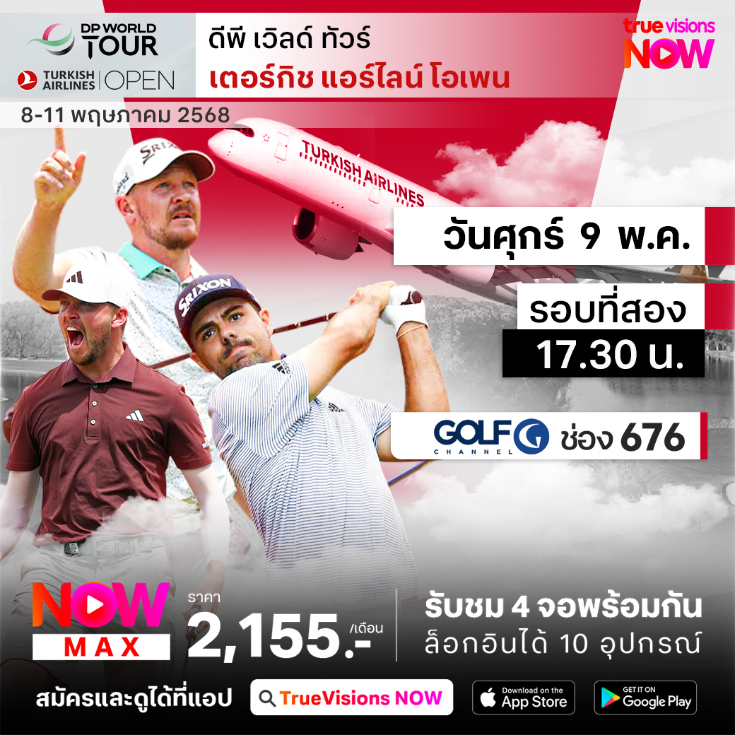 กอล์ฟ ดีพี เวิลด์ ทัวร์ ฤดูกาล 2025 สัปดาห์นี้ไปกันที่ประเทศตุรกี กับ รายการ เตอร์กิช แอรืไลน์ โอเพ่น ที่สนาม เร็คนัม คาร์ยา เมืองอันทัลยา ที่มีเงินรางวัลรวมให้ชิงกัน 2,750,000 เหรียญสหรัฐฯ และ 3,500 คะแนนสำหรับคะแนนสะสม เรซ ทู ดูไบ ร่วมลุ้นกันว่า ใครจะคว้าแชมป์ในปีนี้ไปครอง ชมสด ครบทุกรอบ ที่ ทรูวิชั่นส์