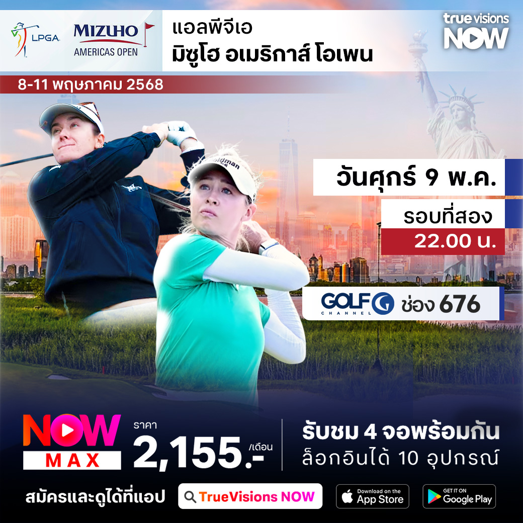 กอล์ฟหญิง แอลพีจีเอ ทัวร์ สัปดาห์นี้ ไปติดตามกันต่อกับรายการ มิซูโฮ อเมริกาส์ โอเพ่น ที่สังเวียน ลิเบอร์ตี้ เนชั่นแนล กอล์ฟ คลับ ใน เจอร์ซี่ ซิตี้ รัฐนิวเจอร์ซี่ แถมปีนี้เงินรางวัลรวมพุ่งสูงถึง 3,000,000 เหรียญสหรัฐฯ ส่งใจเชียร์โปรสาวไทยสู้กับเหล่าโปรระดับโลกรายอื่นๆ ชมสด ครบทุกรอบ ที่ ทรูวิชั่นส์