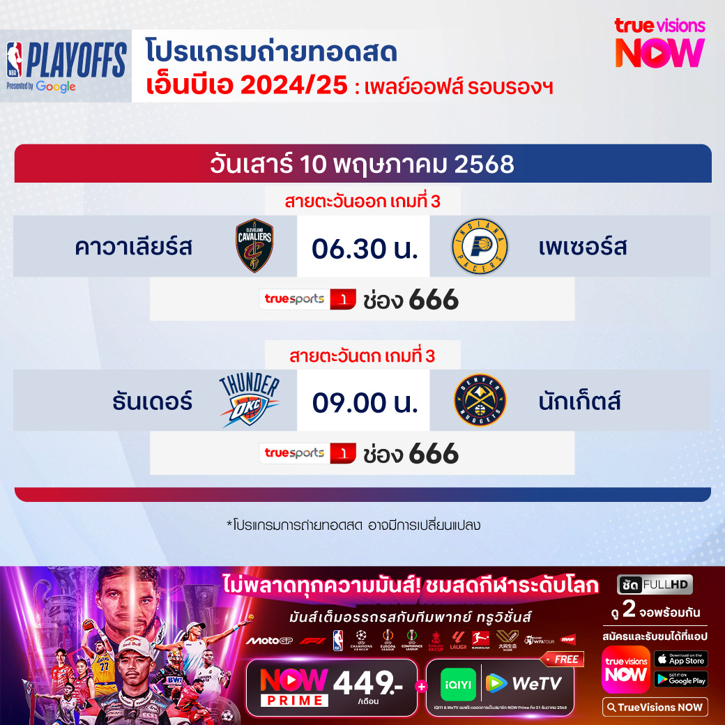 วันเสาร์ 10 พ.ค. Thunder Nuggets เวลา 09.00 ทางช่อง TS 1 (666)