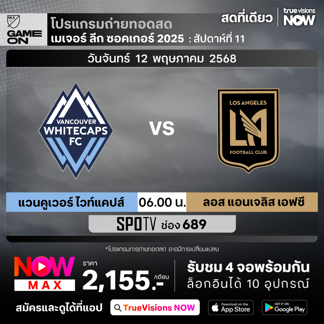Vancouver Whitecaps FC vs Los Angeles FC เวลา 06.00-08.00 ทางช่อง SPOTV (689)