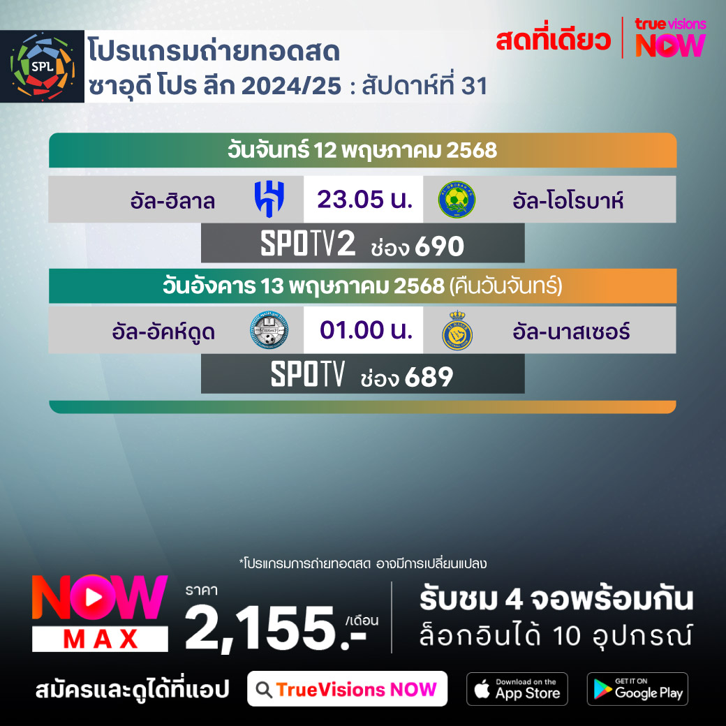 Al-Okhdood vs Al-Nassr เวลา 01.00-03.00 ทางช่อง SPOTV (689)