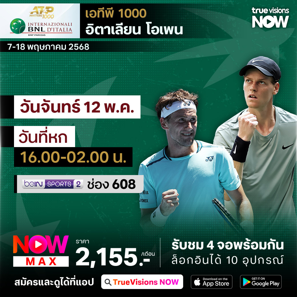 วันนี้มีอะไรดูที่ ทรูวิชั่นส์ ประจำวันจันทร์ที่ 12 พฤษภาคม 68 ยังคงมีกีฬาที่น่าสนใจให้ได้ตามลุ้นตามเชียร์กันเหมือนเดิม โดยในส่วนของฟุตบอลนั้นยังมีศึก ซาอุดิ โปร ลีก ให้ได้ตามเชียร์กันต่อ ส่วนกีฬาอื่นๆ ยังมีเทนนิส เอทีพี ทัวร์ และ ดับเบิ้ลยูทีเอ ทัวร์ รายการ อิตาเลียน โอเพ่น และ บาสเกตบอลเอ็นบีเอ เพลย์ออฟ งานนี้ ทรูวิชั่นส์ จัดเต็มให้ชมกันถึงบ้าน