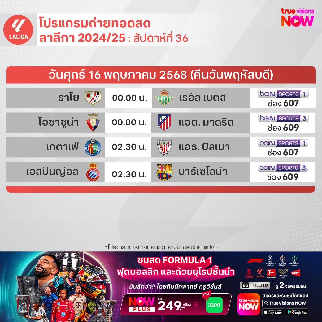 Rayo Vallecano vs Real Betis เวลา 00.00-02.00 ทางช่อง beIN 1 (607)
