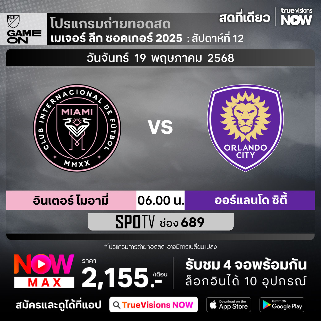 Inter Miami vs Orlando City เวลา 06.00-08.00 ทางช่อง SPOTV (689)