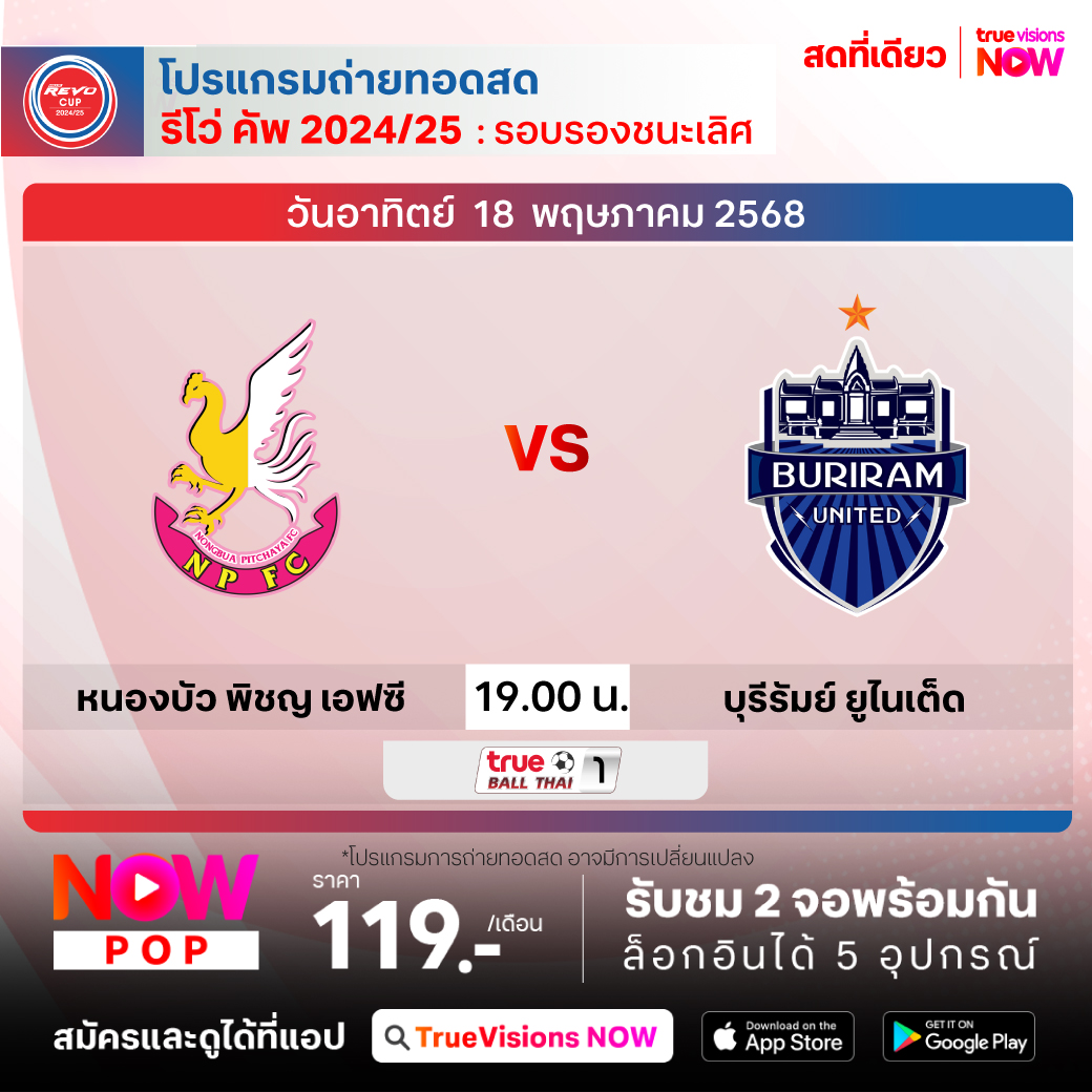 หนองบัว พิชญ เอฟซี พบ บุรีรัมย์ ยูไนเต็ด เวลา 19.00-21.00 ทางช่อง True Ball Thai 1